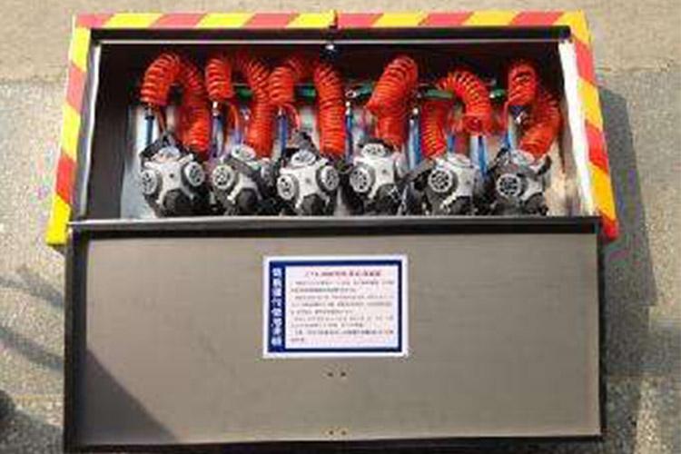 ZYJ壓風自救裝置用于具有煤與瓦斯突出的煤礦井下救災防護。本裝置一箱六組,能同時提供六人使用,達到互相照顧的效果。采用輕型呼吸面罩直接帶在嘴上進行呼吸,還具有穩定調節壓力、手動流量調節、三級消音、過濾、排水、防塵等六種功能,還能在彈簧管范圍內自由活動。通過該裝置輸送新鮮空氣,使避災人員能長時間呼吸輕松,達到安全避災,穩定工作情緒的目的。
